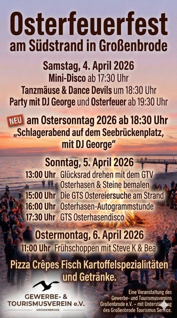 Hier werden Plakate abgebildet, die auf eine Veranstaltung in Großenbrode hinweisen. Unabhängig davon, ob der GTV, die GTS oder auch einzelne Mitglieder vom GTV das Event veranstalten. Hauptsache, interessant für Großenbrode.